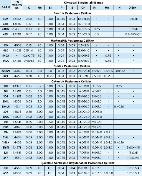 - Ferritik-Ostenitik (dubleks)